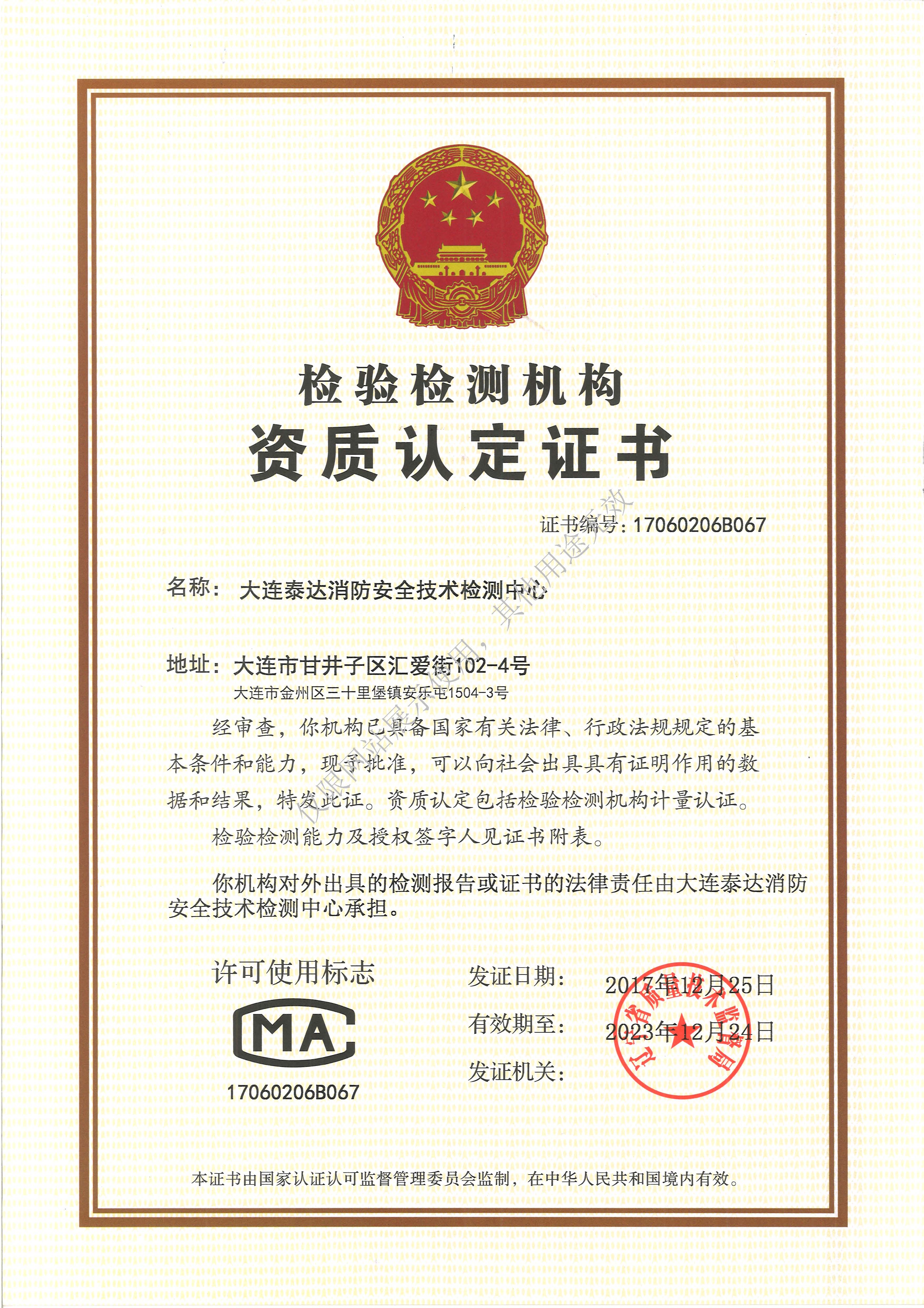 大連泰達(dá)消防安全技術(shù)檢測(cè)中心